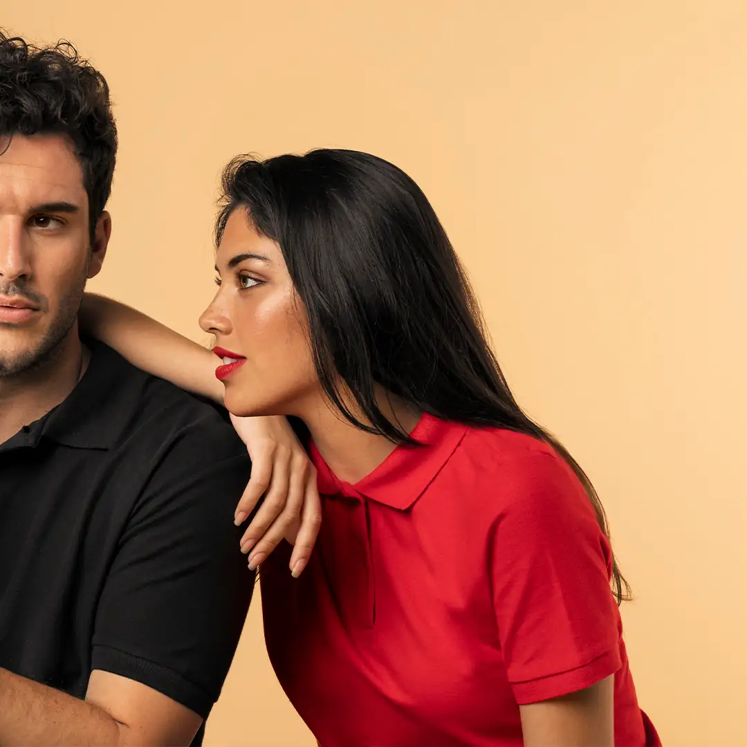 Scegli il colore e la taglia delle magliette polo da donna che preferisci, prova sul simulatore come risulta la tua grafica e inviala seguendo le istruzioni indicate